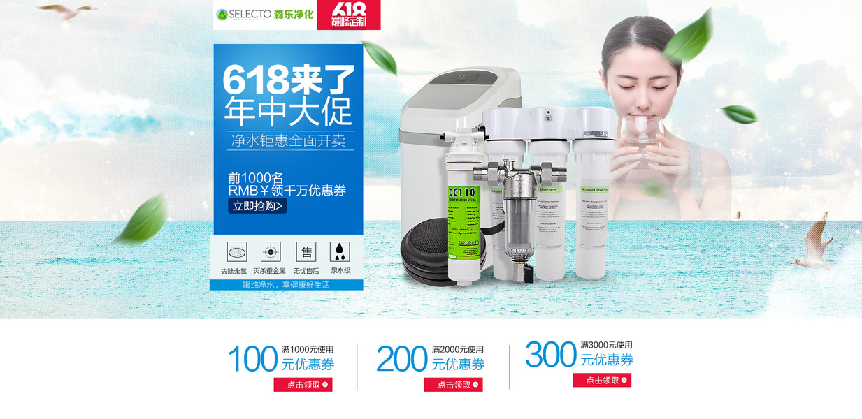 淘宝天猫京东店铺首页装修-家庭生活用品类-电器类-净水器首页设计-活动首页-618活动首页-排版