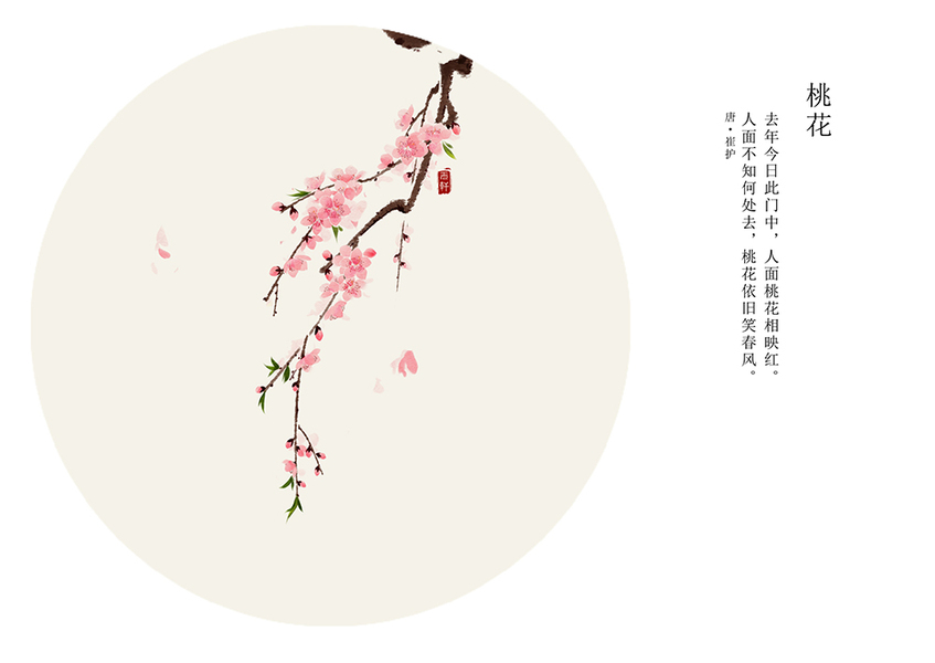 古书毛笔酒壶24节气古风春分春天四季桃枝桃花