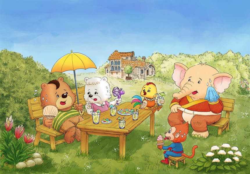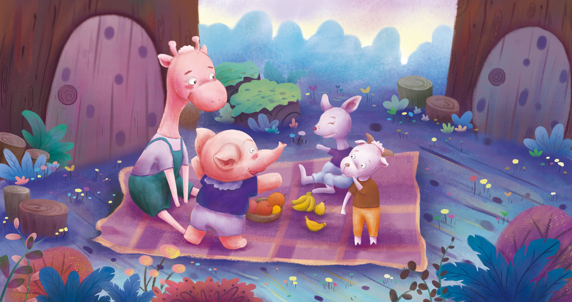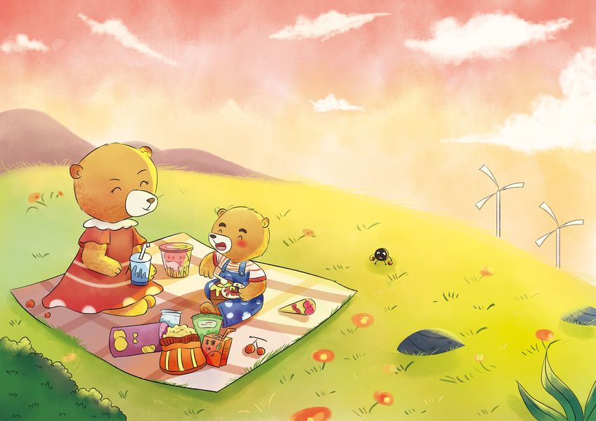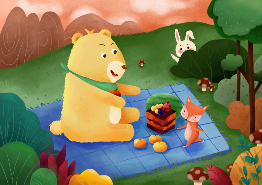 板绘儿童插画动物野餐