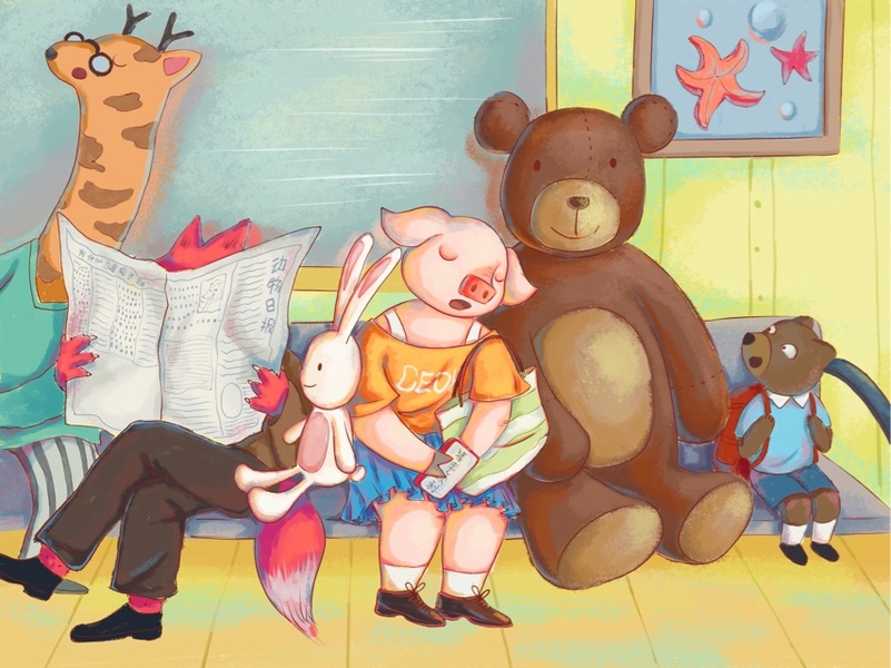 熊 兔 插画 临摹