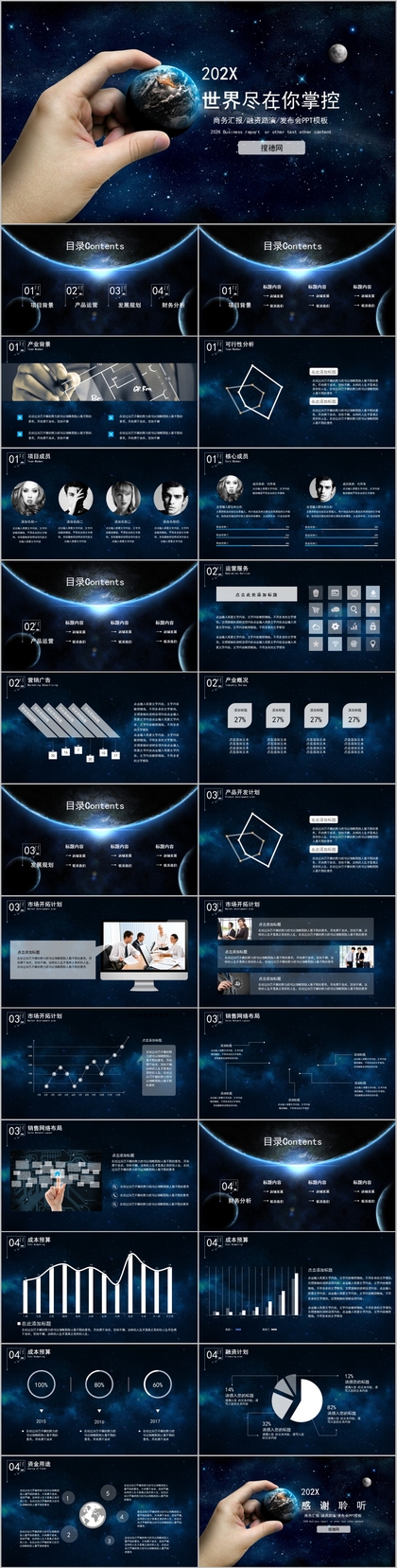 宇宙星空高端科技风商业创业项目融资计划书PPT模板