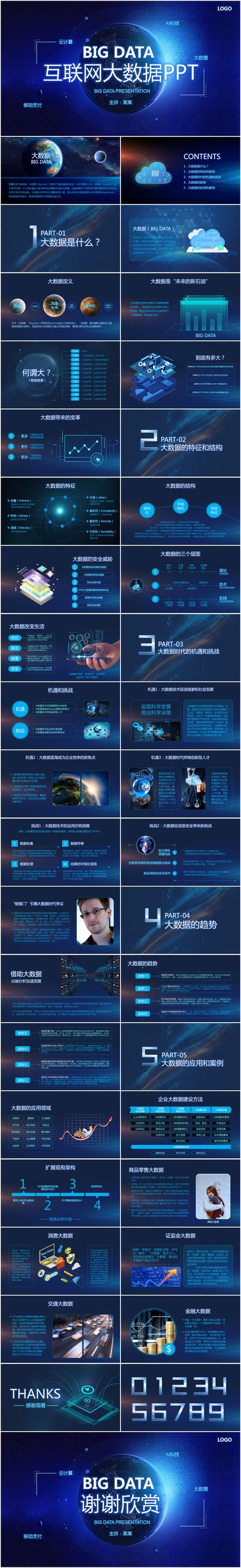 动感酷炫高科技互联网大数据云计算推广宣传PPT模板