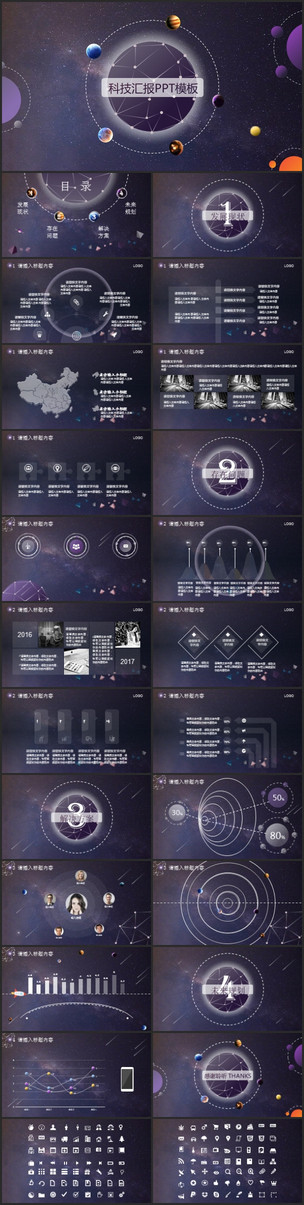 【25页动态】梦幻紫色星空大气炫酷PPT模板