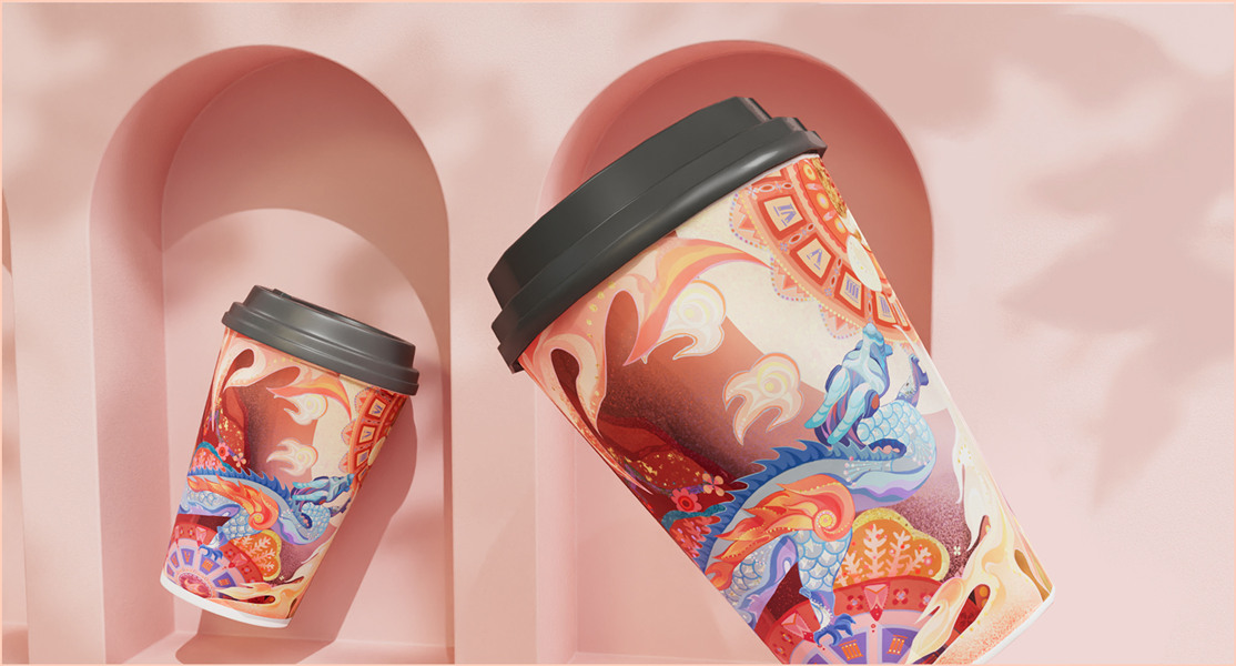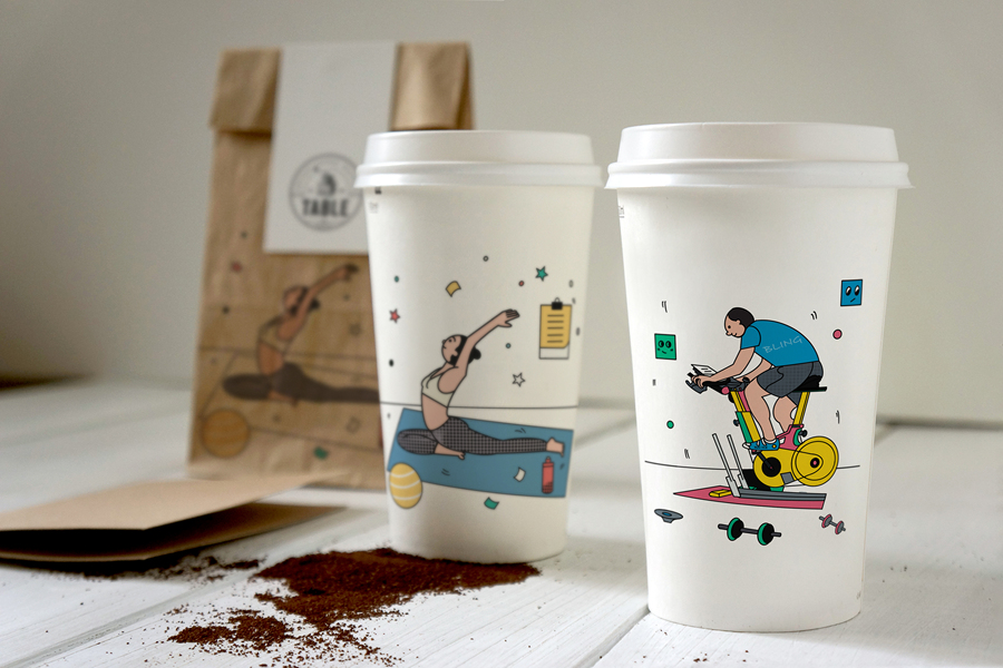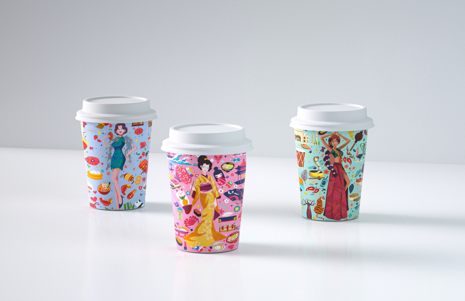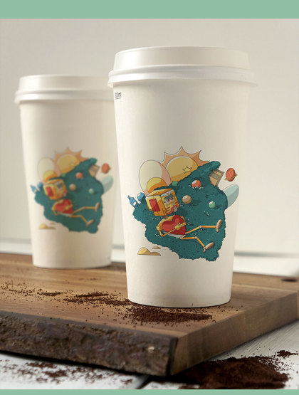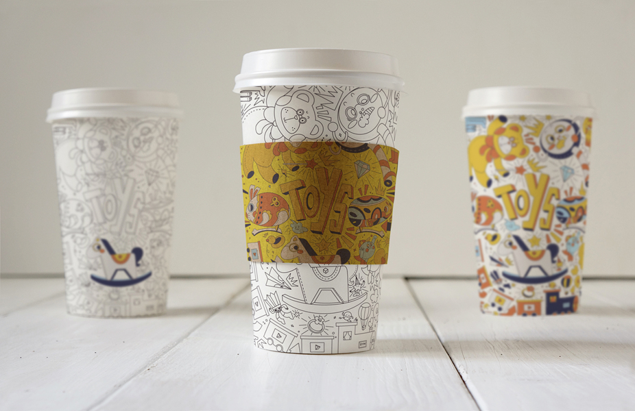 元素插画-玩具-咖啡杯包装插画礼品包装插画
