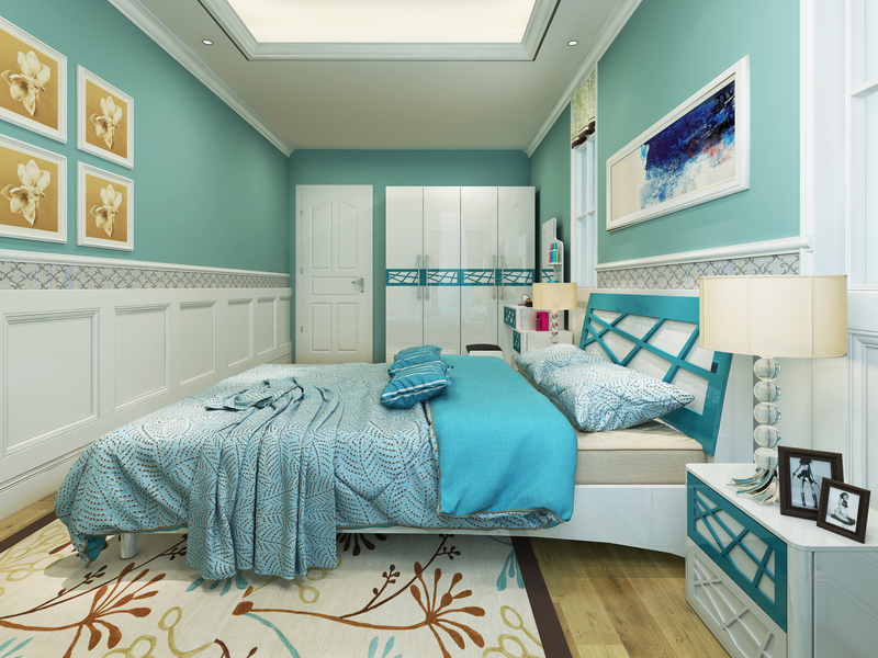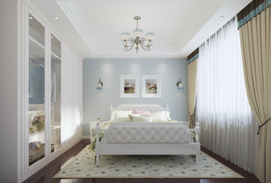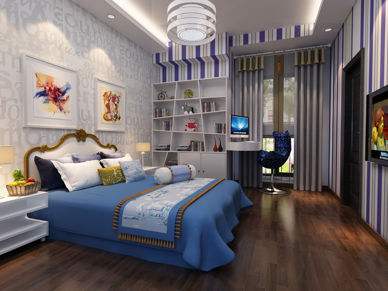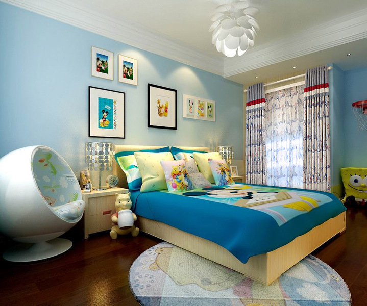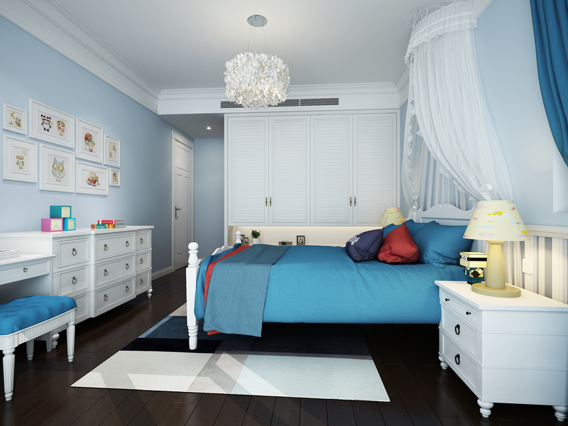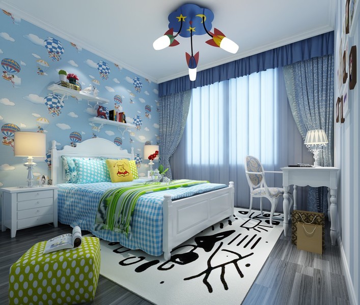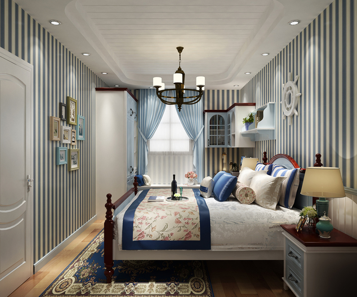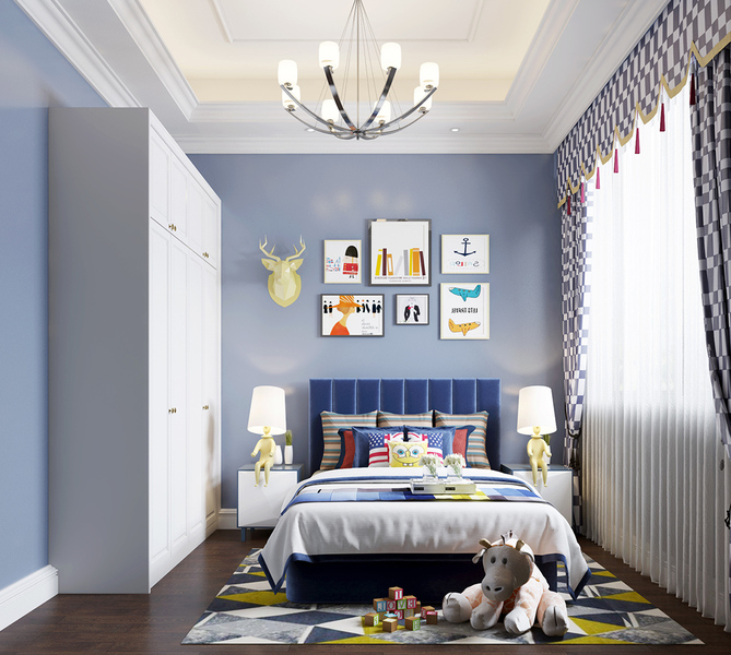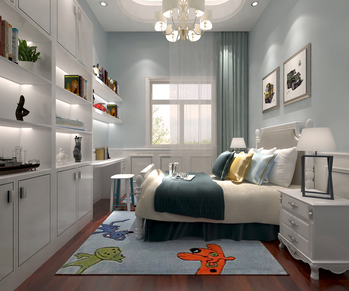 10㎡地中海风格儿童房设计效果图,衣柜和书桌转角一体