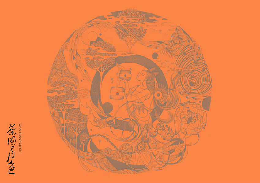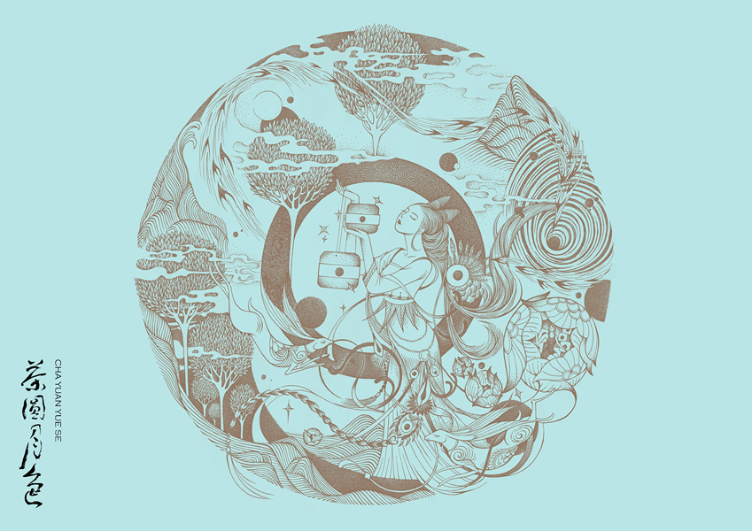 茶圆月色包装插画设计