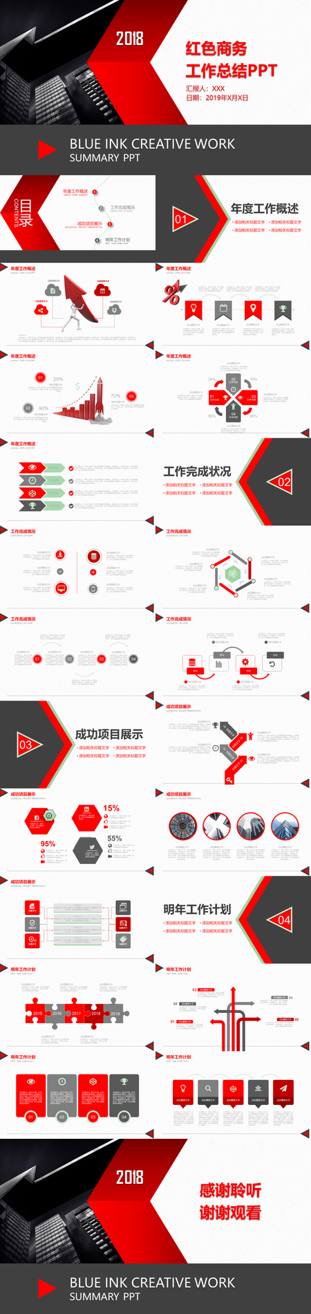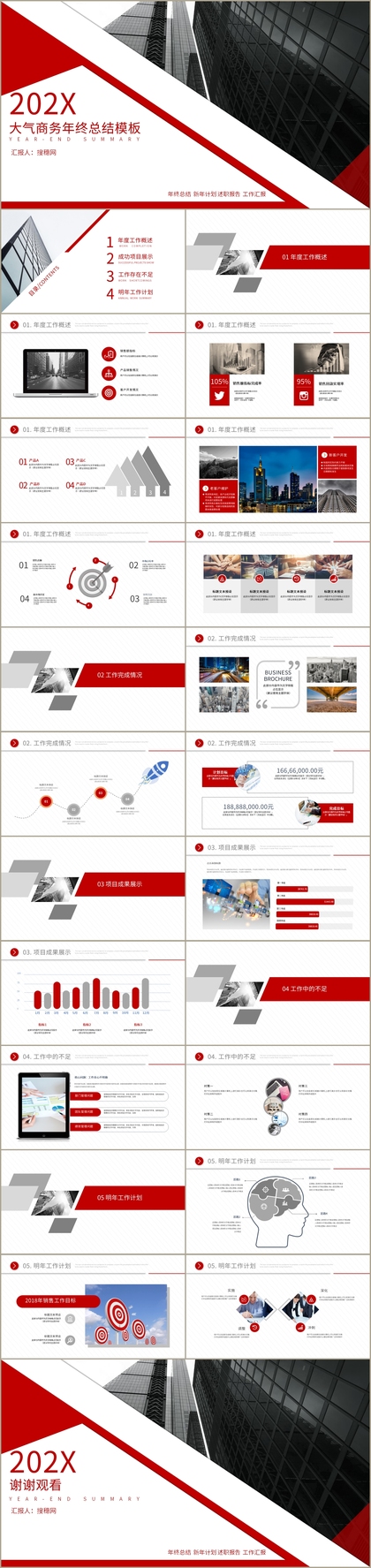 红色简约商务时尚年终工作总结汇报产品宣传ppt模板