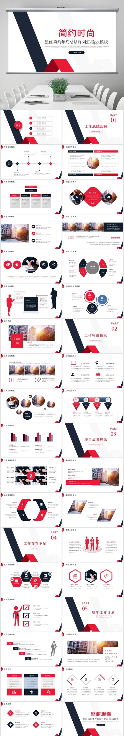 简洁红黑色商务企业工作总结项目汇报PPT模板
