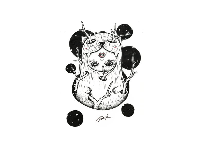 黑白插画——《黑胡子的魔法》