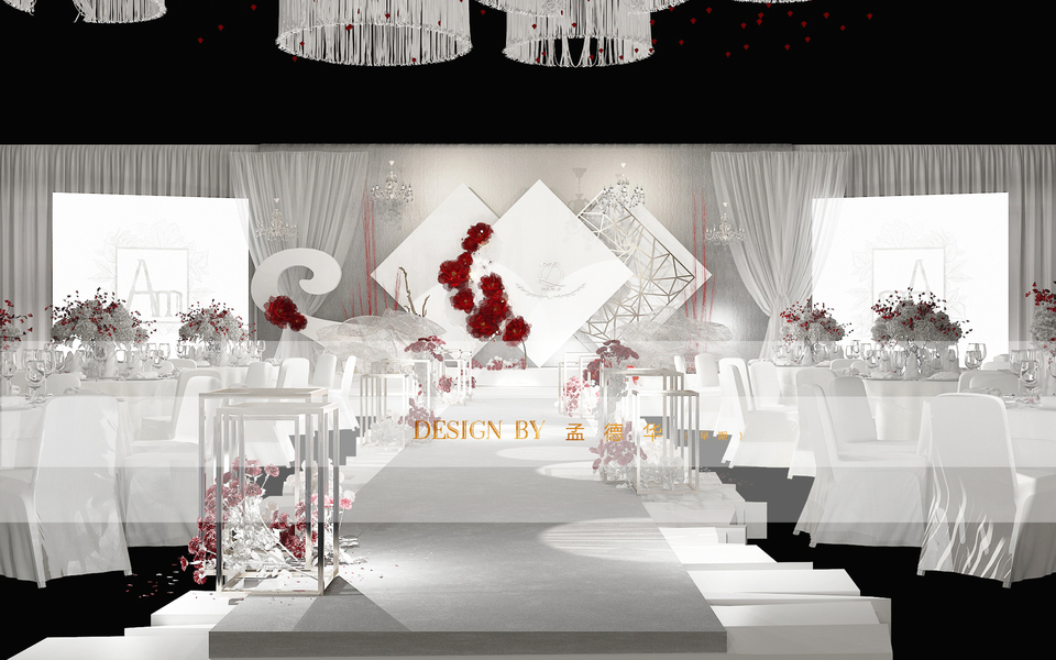 早期超低预算婚礼3d设计草图 红白色婚礼