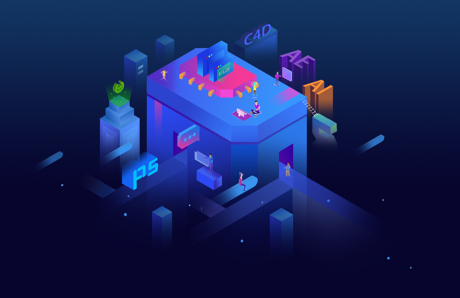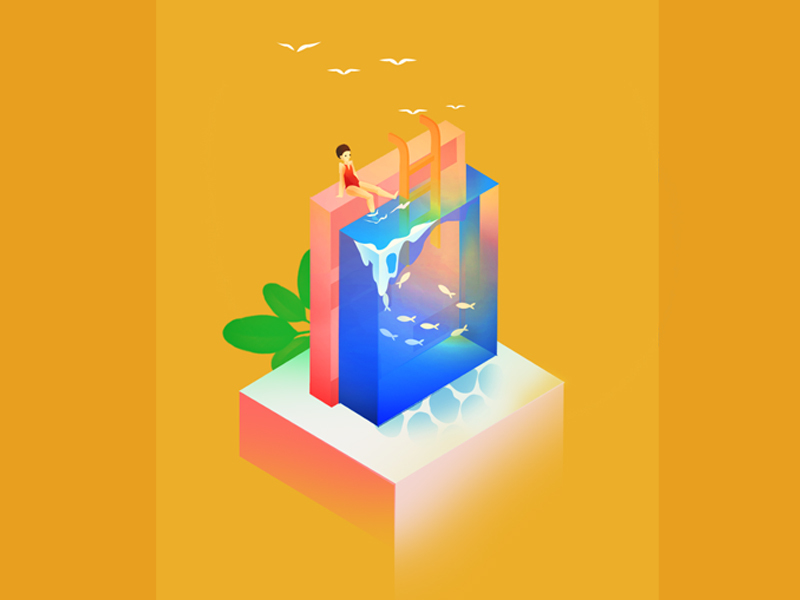 2.5D插画-618文字的线稿及上色(临摹作品)