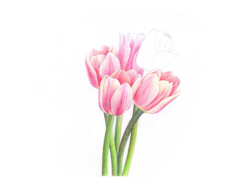 彩铅手绘—一束郁金香