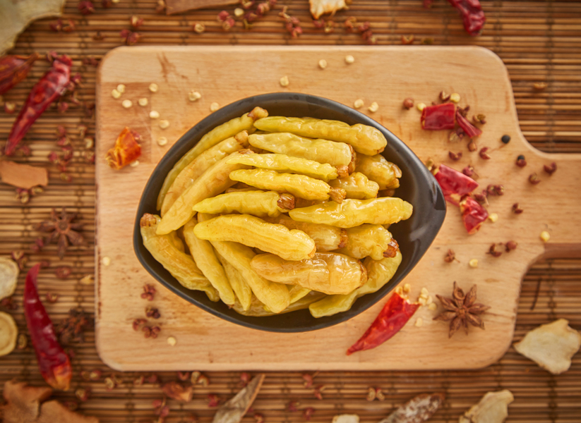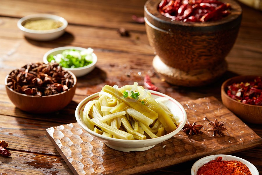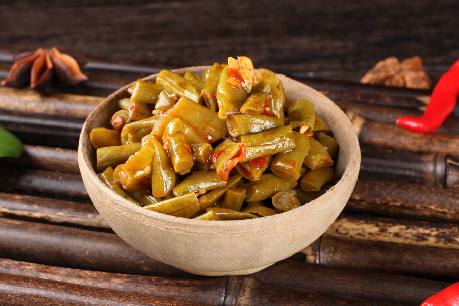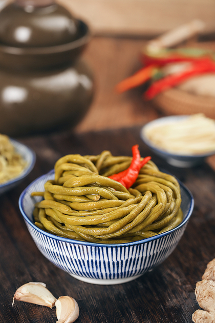 泡菜酸豆角辣萝卜卤花生香辣藕条拍摄