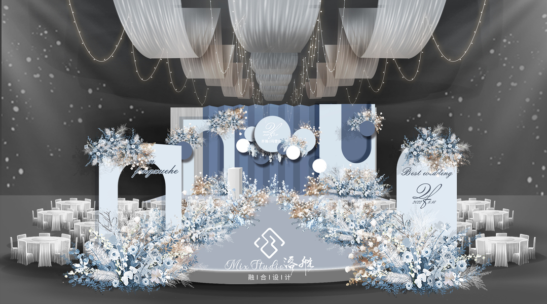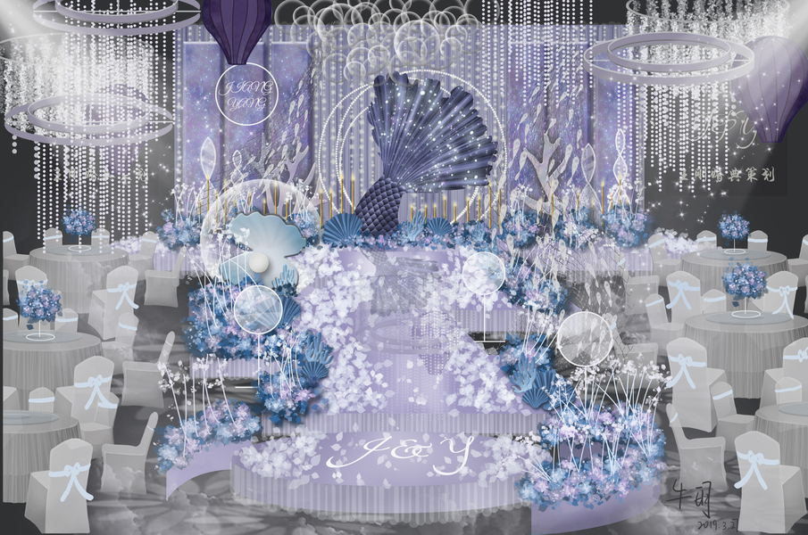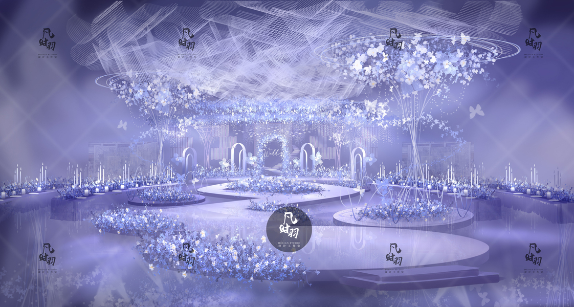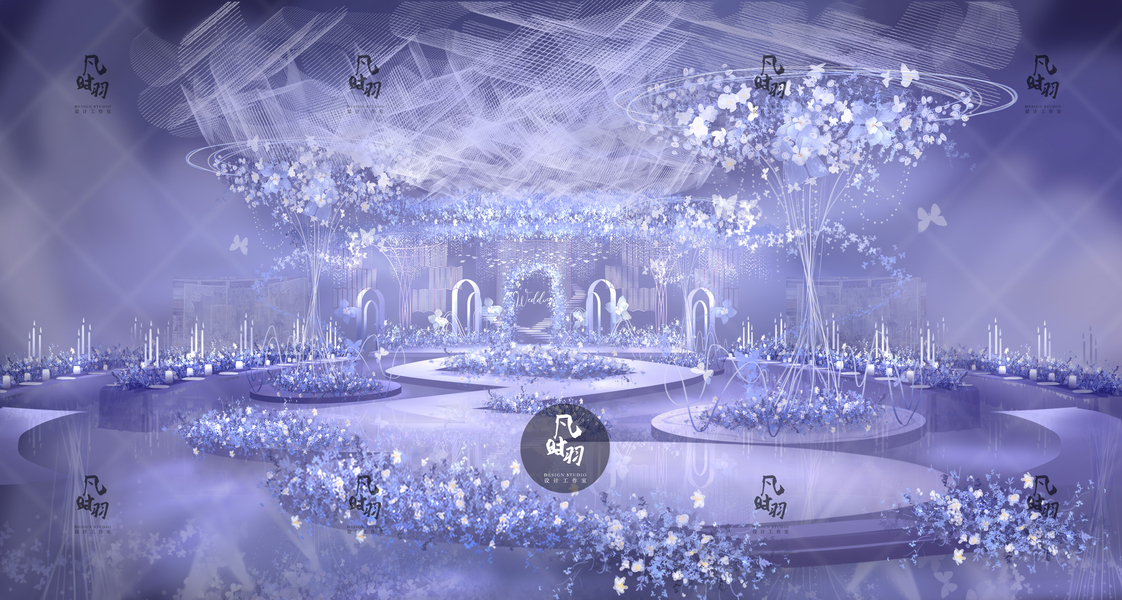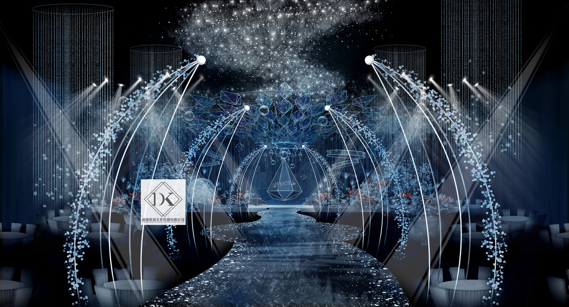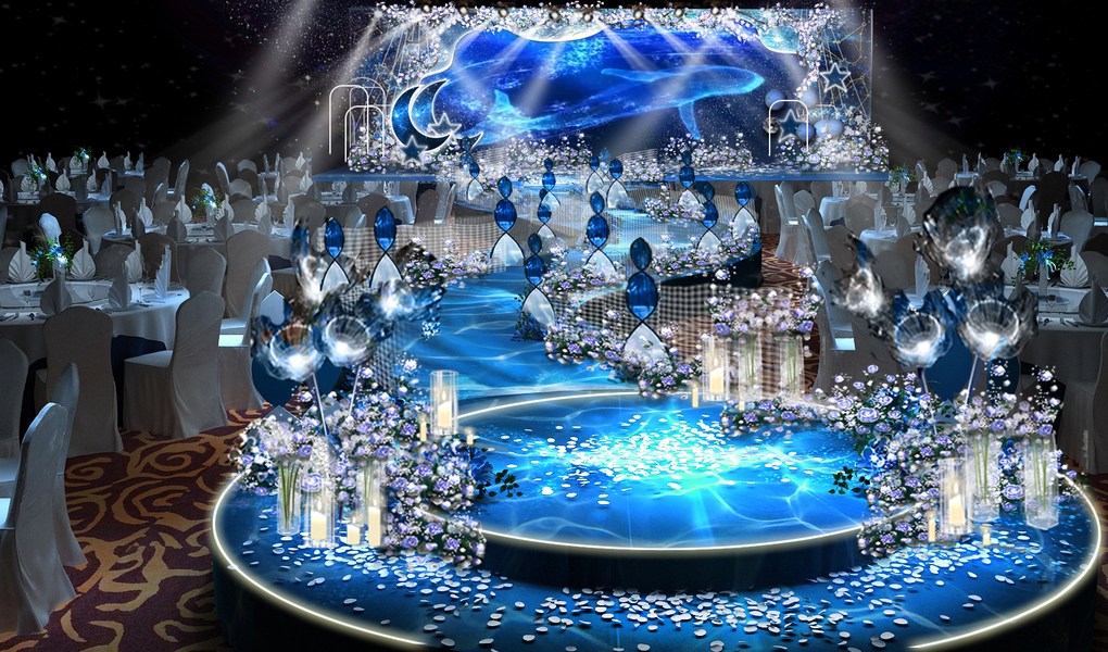 SurDesign蓝色系星空婚礼宴会3D效果图
