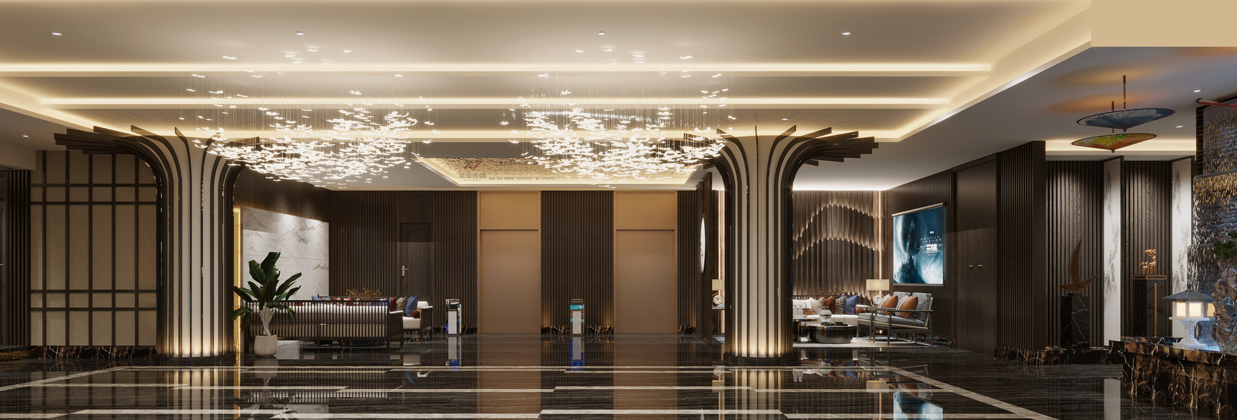 郑州新中式奢华集团办公室装修效果图-宏钰堂装修公司