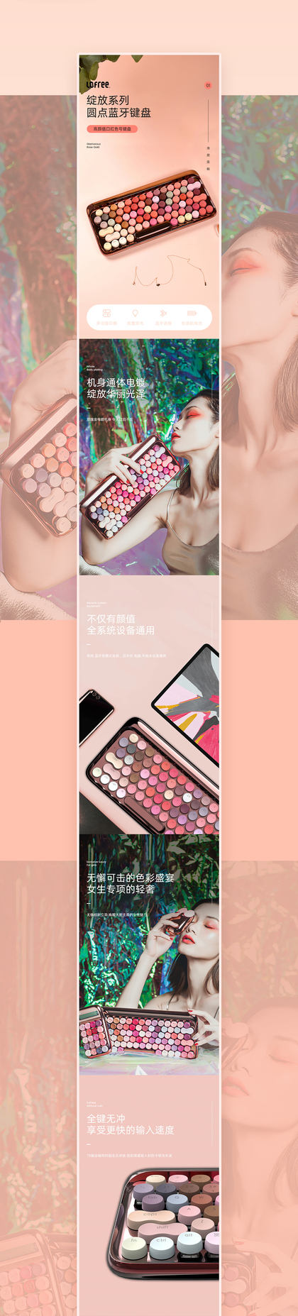 圆点蓝牙键盘+晨曦化妆镜