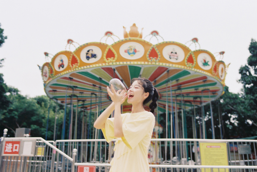 在酒店自助餐厅大吃特吃的亚洲可爱少女人像