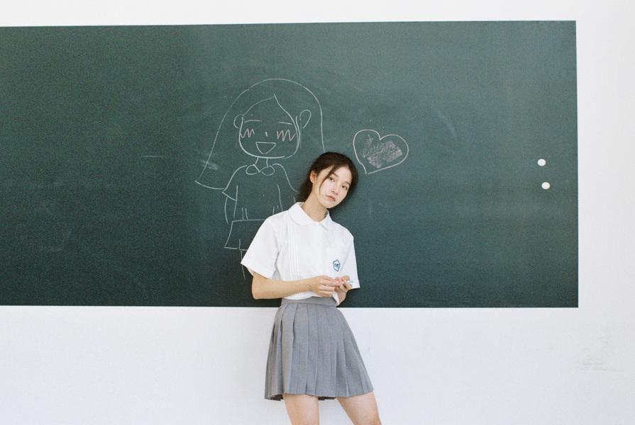 在烘焙店吃蛋糕喝饮料的可爱亚洲少女
