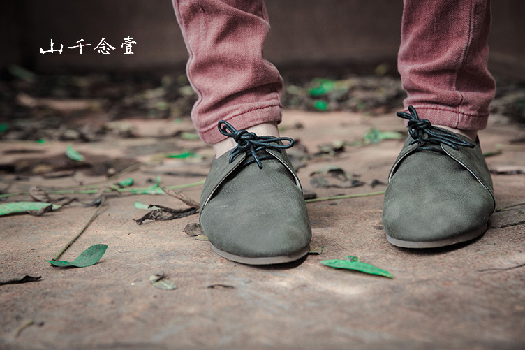 原创女式复古文艺牛皮单鞋森女真皮平底鞋