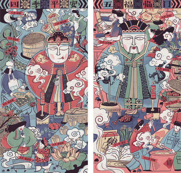 灶神年画2018之江南四时糕点