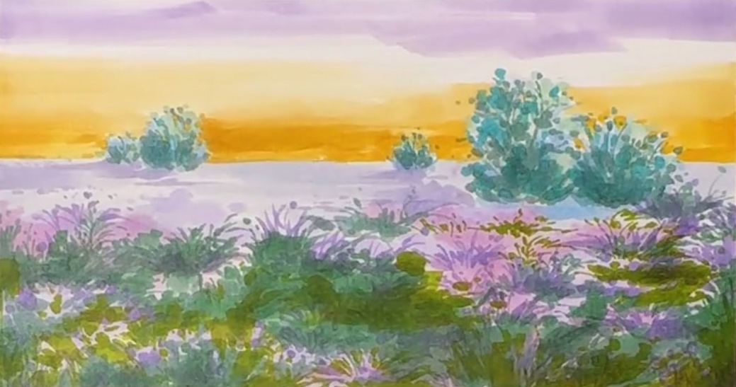 水彩手绘园林自然植物场景绘画