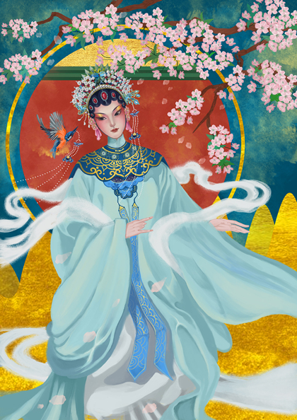 中国风昆曲牡丹亭情人节插画