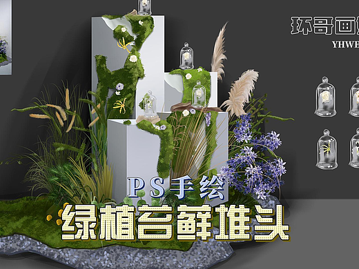 绿意盎然,花香满堆,婚礼手绘花艺绿植苔藓