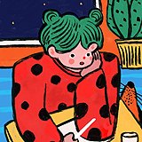 磨砂肌理春日春节小清新活力插画手绘画画商务亲子关系