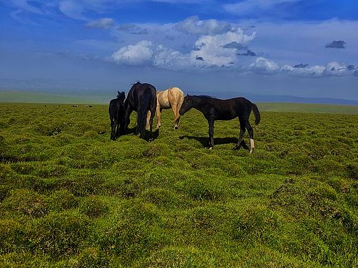 成群骏马成为夏日草原上的一道风景
