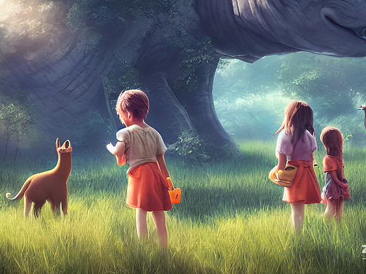 #AI创作实验室#动物园、孩子、星球、宇宙、草地、,景