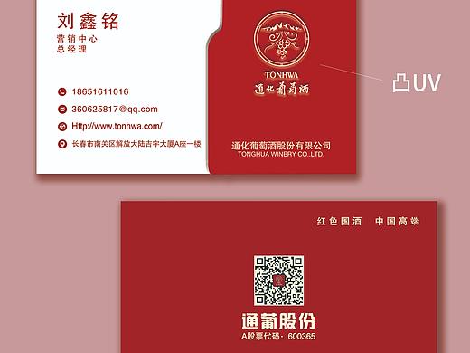 企业名片烫金、凸UV工艺排版设计,红色,红酒
