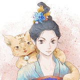 唯美古风手绘-九尾白狐与紫藤树灵蝶-山海经聊斋志异