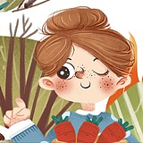采蘑菇的小姑娘背着一个大竹筐|原创插画