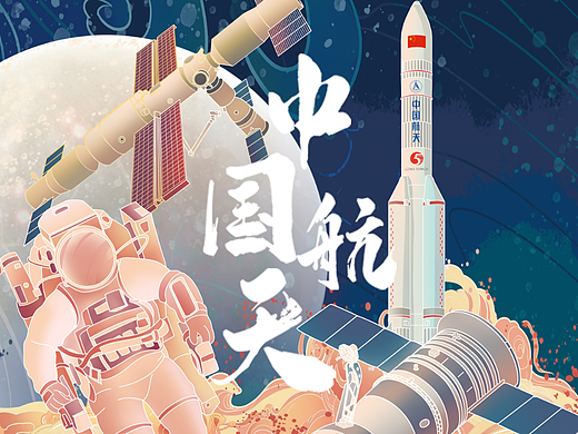 神舟 太空 宇航员 载人航天 航天员 太空行走写实插画