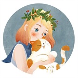 钢笔画文学作品插图|治愈系列|猫 少女 植物