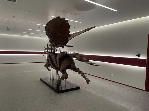 烟台展览馆方块拼接桐木飞马雕塑落地摆件