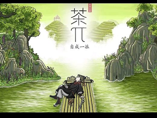 禅意水墨山水古风国风《一派禅意》意境唯美插画