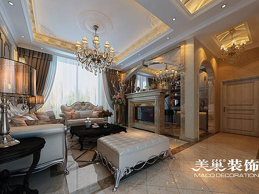 美巢郑州升龙御玺144平三室两厅装修案例欧式风样板间