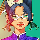 闲聊甚欢的荒川之主和金鱼姬(商业插画)