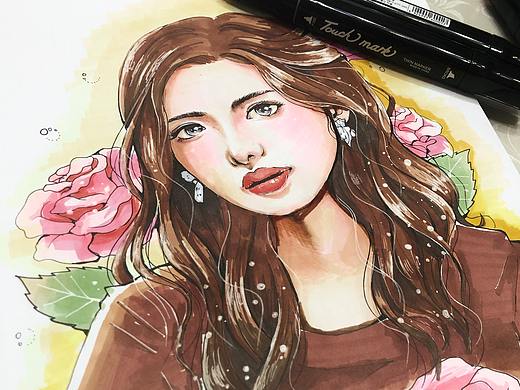 水彩手绘少女穿搭卡通形象头像石原里美水彩教程壁纸
