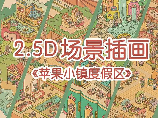 原创板绘夜晚月光月亮花园森林草木树场景插画
