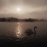 冬季的天鹅湖水墨冬季中式意境24节气中国风古风插画