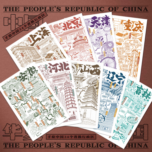 原创·手绘中国·34个省级行政区·插画文创明信片
