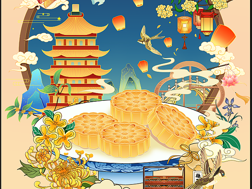 古风:(商业插画)扁平风,中国非遗文化传统风筝设计